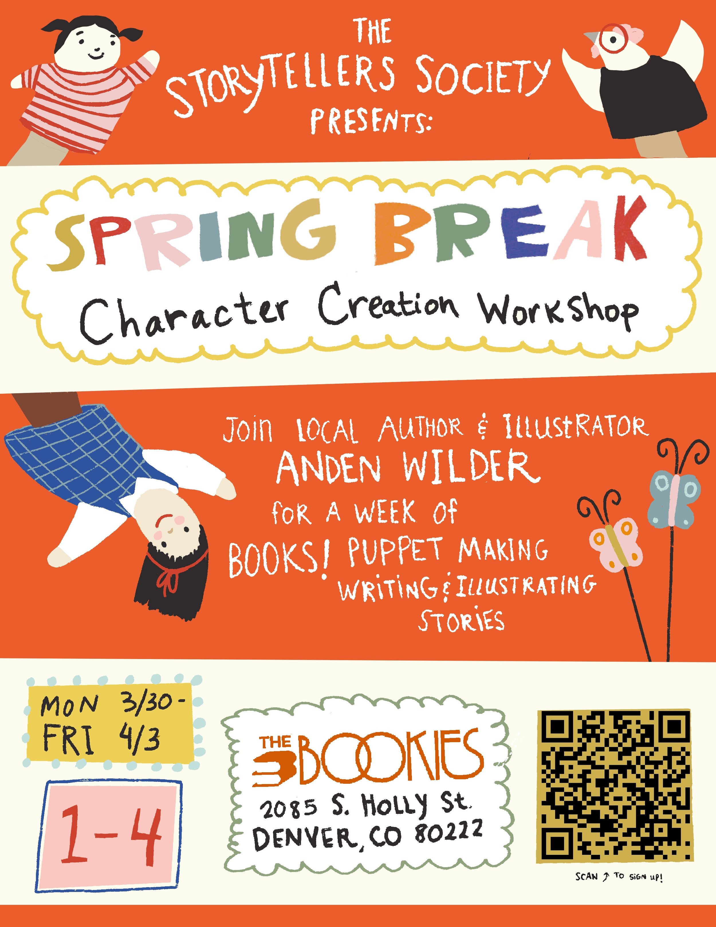The Storytellers Society is a program that that aims to provide a unique, engaging, and expressive environment for kids to tell their own stories. We want to encourage self-expression and storytelling through art, writing, puppetry, and to build community through shared creative experiences.